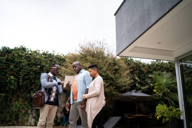 Real estate agent showing new house to customers