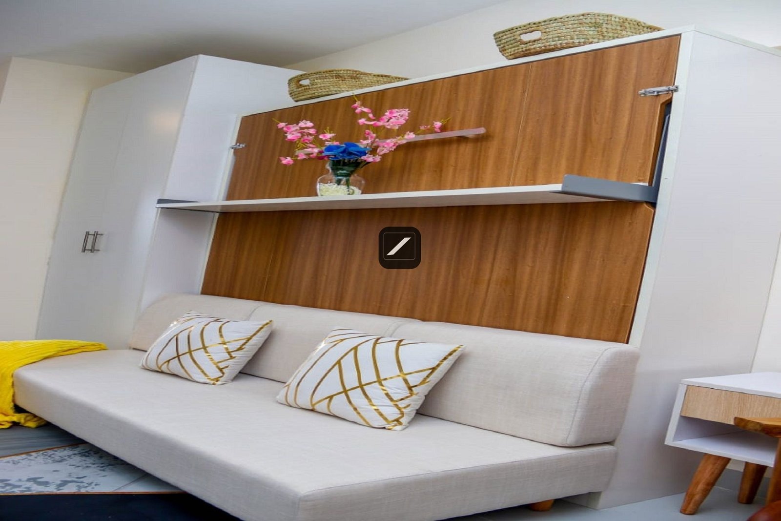 - Cozy bed-cum-seat with spacious wardrobe for maximum utility