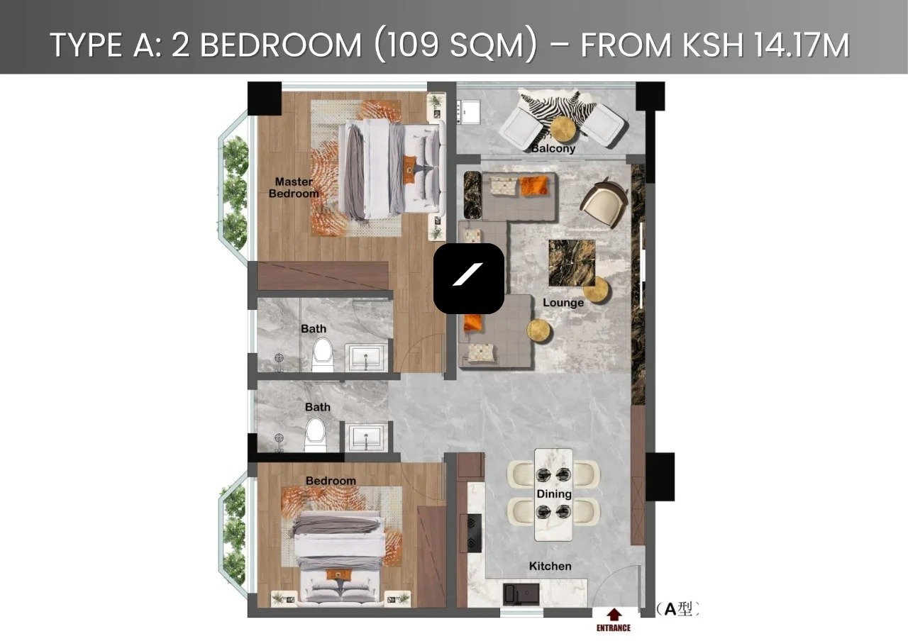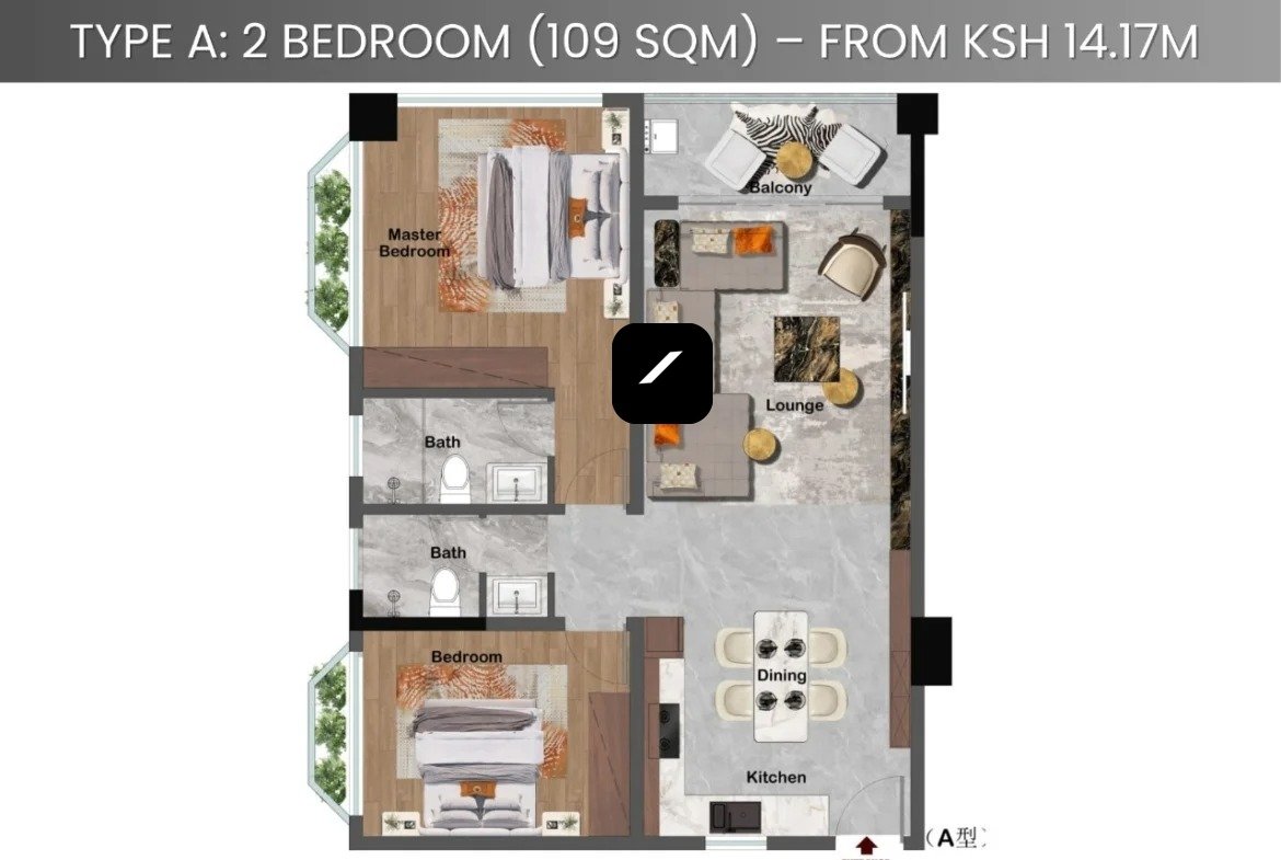 1 Bedroom (88 sqm) – from Ksh 10.3M