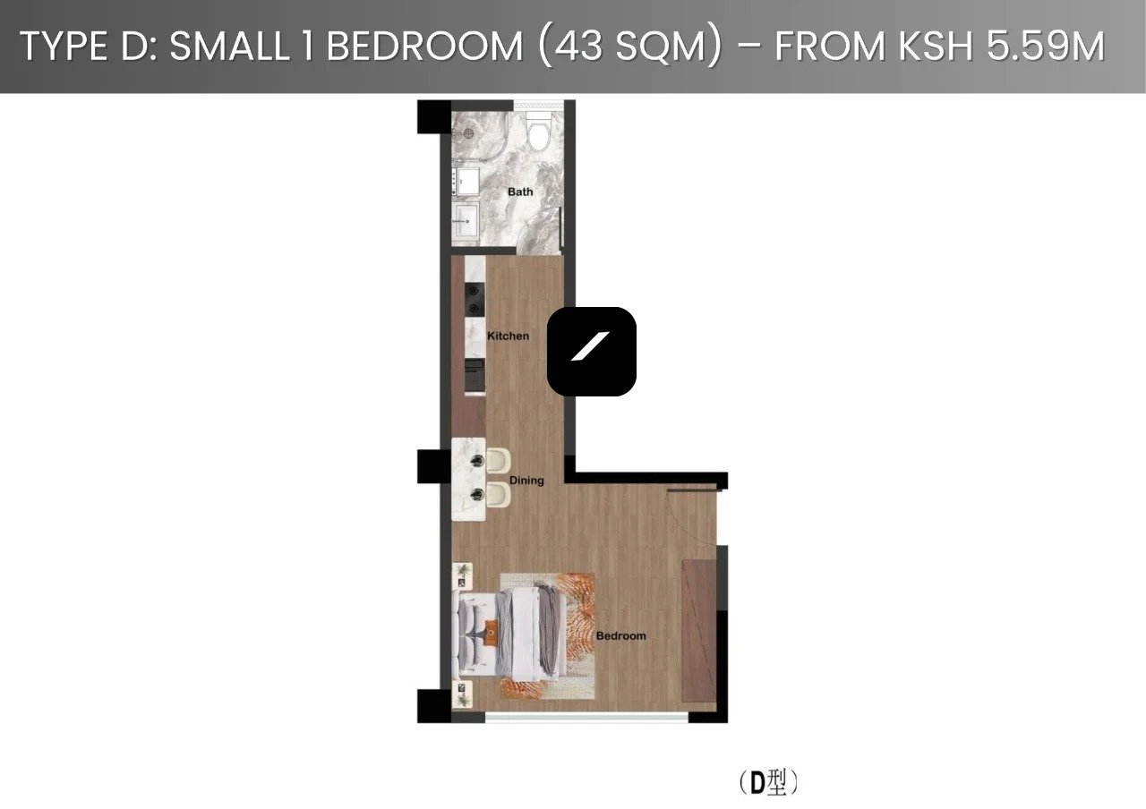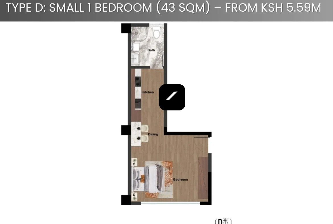 Small 1 Bedroom (43 sqm) – from Ksh 5M