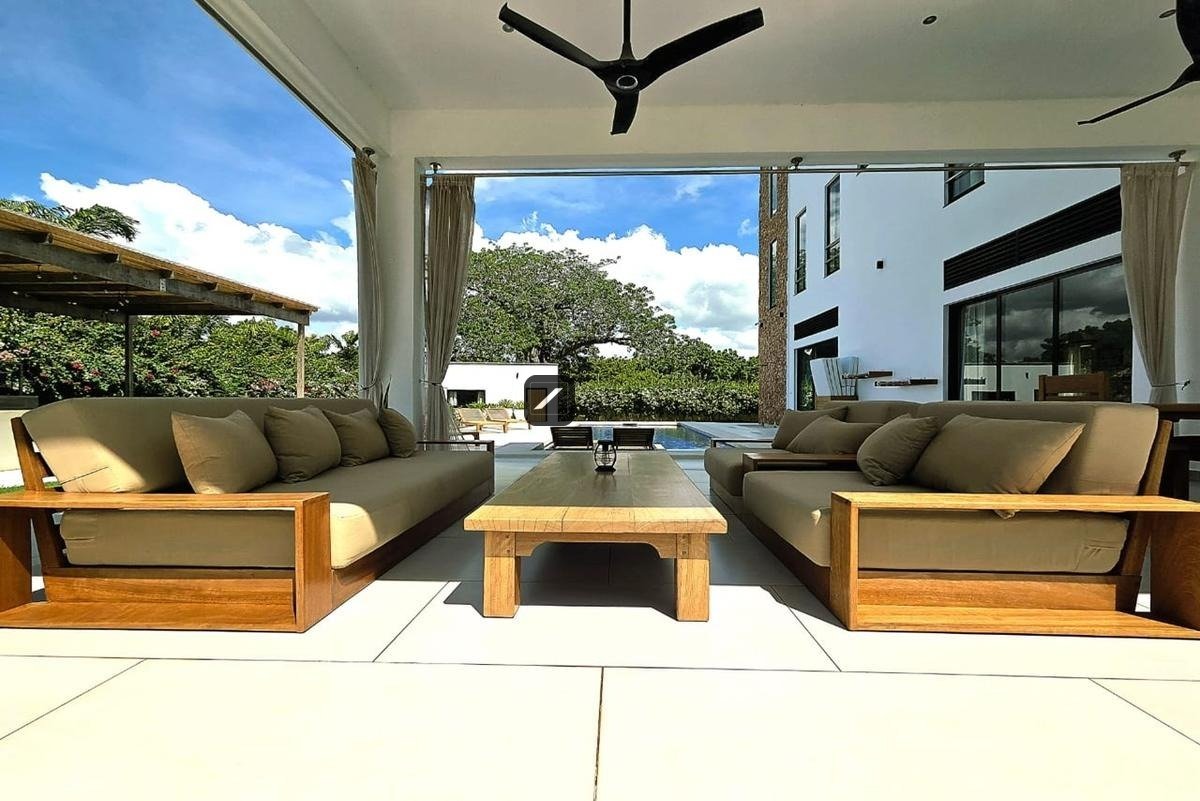 - very stylish outside roofed lounge area overlooking large pool